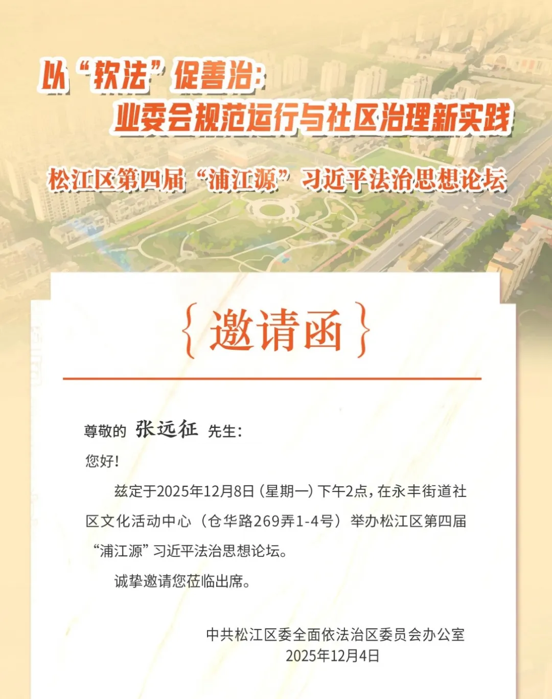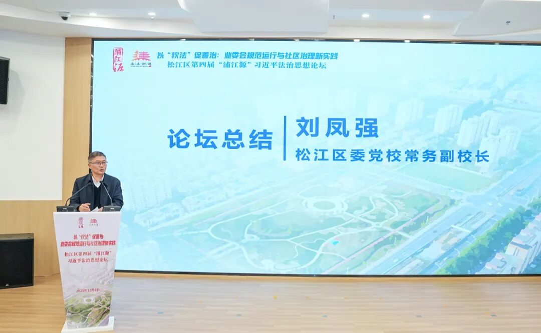 12月8日下午,2025年宪法宣传周系列活动压轴之作——第四届“浦江源”习近平法治思想论坛在松江区永丰街道社区文化活动中心顺利举办。