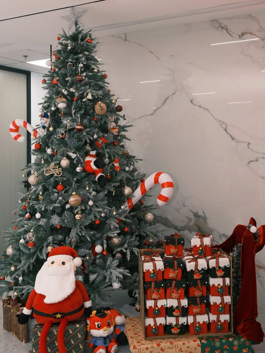 一踏入律所,便能感受到浓郁的圣诞气息。大厅中央矗立着三米高的圣诞树,枝桠间缀着彩灯、铃铛和精致挂饰;玻璃上错落贴着雪花、云朵,阳光透过玻璃洒下,光影相映格外雅致。暖色彩灯缠绕在各处,将律所映照得暖意融融,驱散了冬日的寒凉。12月24日上午,一场充满惊喜与温情的圣诞派对如期而至,为严谨专业的律所注入了烟火气,也让在场的律师们感受到律所的温暖归属感。